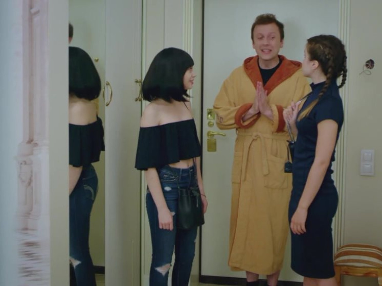 Виолетта и Таша - две абсолютно незнакомые девушки, спешащие найти себе квартиру. Неожиданно удача улыбается им, и москвички обнаруживают жилье с хорошими условиями и снимают его у милой пожилой дамы. Однако сразу после подписания контракта девушки понимают, что попали в ловушку самой настоящей аферистки. Столкнувшись в доме, они осознают, что дамочка обманула каждую из них, но, не имея иной возможности, квартирантки решают жить вместе. Вскоре ситуация обостряется с появлением в квартире третей девушки - Ирмы. Очаровательная незнакомка, ворвавшаяся в дом, оказывается его истинной хозяйкой, долгое время находящейся в разъездах по странам. В развязавшийся конфликт между героинями также оказывается втянута и управляющая домом. Но вскоре скандал оборачивается большой проблемой для управдома, и ее лишают работы, из-за чего единственным местом укрытия остается квартира с тремя жертвами мошенницы.