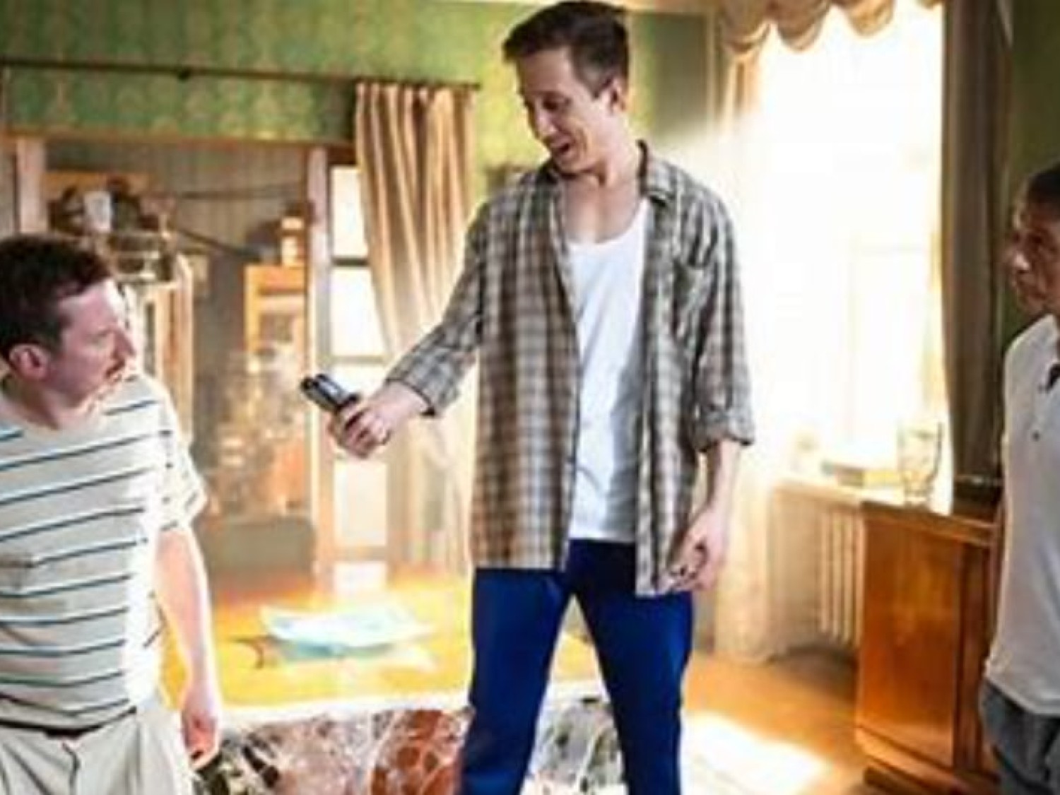Историй о том, как было создана машина времени. Однако данный рассказ отличается от остальных тем, что машина перебросила персонажей в другой временной отрезок вместе с половиной квартиры. Однажды ученый, который проживает в восьмидесятые годы прошлого века удачно создает аппарат, который перенесет в эпоху интернета только определенную часть своей квартиры. Старик вместе со своим внуком попадает к другой семье, в составе которой муж, жена и дочь. Теперь героям придется делить жилплощадь. Жизнь главных героев станет более интересной, ведь совсем незнакомые друг другу люди начнут жить под одной крышей. Таким образом, картина представляет историю о том, как два мировоззрения столкнулись внезапно.