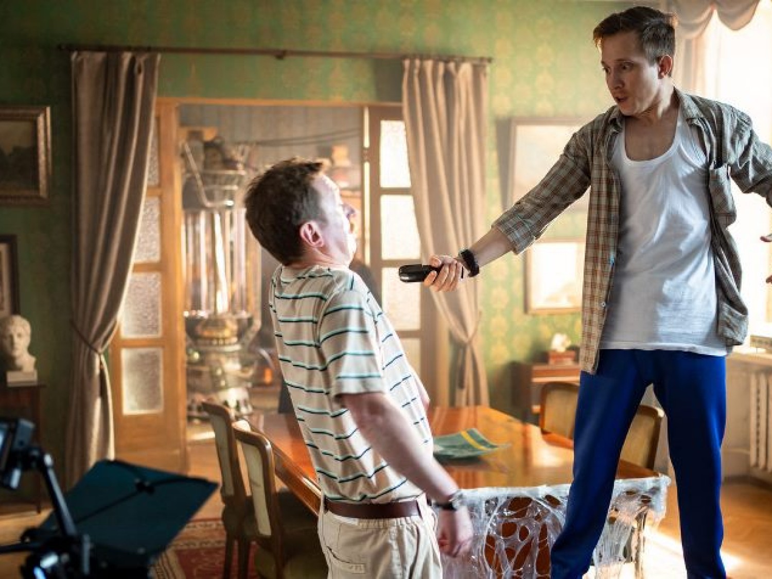 Профессор Матвей Пиотровский осуществляет то над чем он трудился весьма долгий период, невероятный научный эксперимент, создавая штуку, умеющую проходить через продолжительность, которая разъединяет его квартирку на две части: одна остается в прошлом в котором проживают они, а другая попадает в эпоху интернета. На нынешний период эту жилплощадь делит обеспеченная личность Сергей, его милая супруга, также у пары есть дочурка. Однако смежность становится источником многочисленных затруднений для всех, поскольку соединение совсем различных периодов обделяет каждую из семей доступа к половинке места. Сложностей становятся все больше с внезапным выходом наружу потомок героя, который был в ожидании несколько десятков, дабы воспрепятствовать одному весьма опасному случаю.