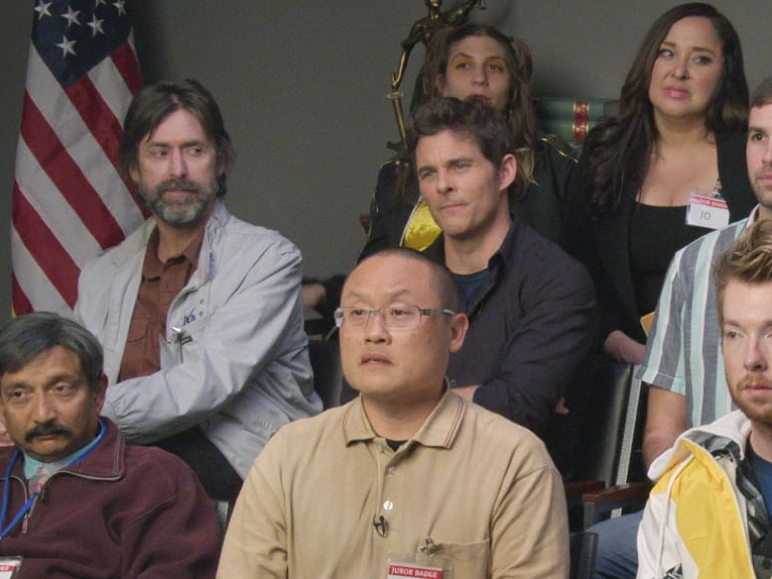 Каждое государство наделяет граждан особыми правами, которые тем или иным способом пытается защищать. Однако нельзя забывать о том, что вместе с дозволенным, позволенным есть и то, чего требует страна. Например, участие в судебных процессах в качестве присяжного, ведь это прописано аж на страницах Конституции. Отказаться без адекватных на то причин невозможно. Вот и обычный работяга Роннальд Гладден не решился идти вопреки повестке на явку Верховного Суда, время на это имеется. Помимо него естественно есть и другие, на удивление спокойные, уверенные в происходящем люди. По мере событий герой узнает окружающих его «коллег», по доброте душевной соглашаясь мгновенно помогать с решением каких-либо личных проблем. Но только до тех пор пока не осознает, что единственный не в курсе того, что вокруг лишь актеры, рассмотрения дел - постановка, а не настоящие заседания. Обломается ли парень или продолжит дальше заниматься интересным занятием – скоро выясним.