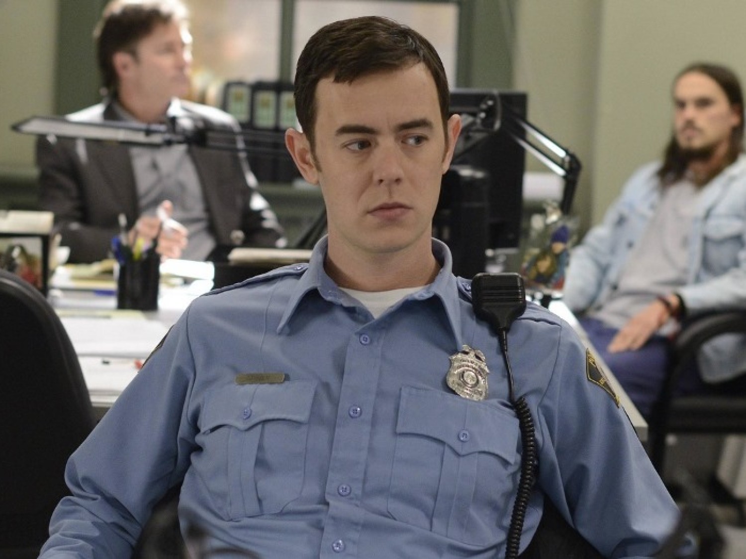 только начинает работать в полиции, с помощью своего тещи, шерифа Хэнка
