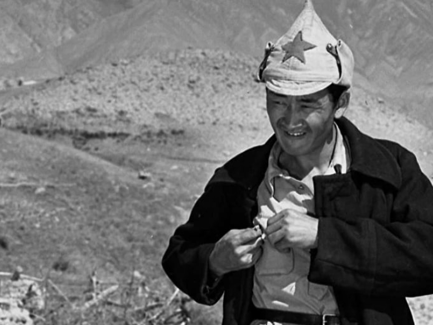 Дюйшен, бывший красноармеец, учитель, получает комсомольскую путевку,