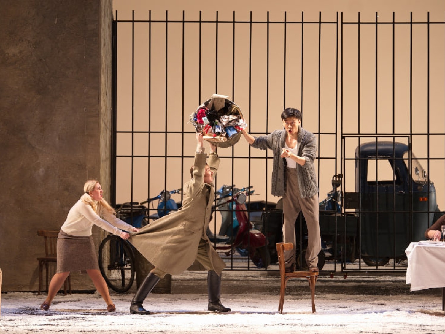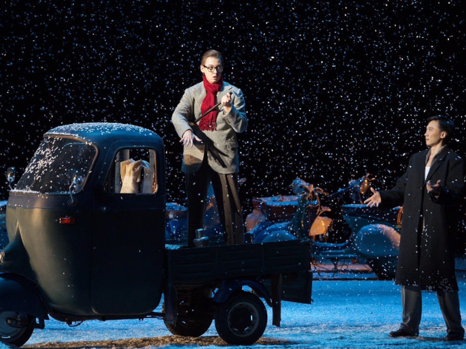 Происходящие деяния демонстрируют нам как все было на самом деле в те времена в прекрасной окружности. На этот раз персонажи решили, вместо традиционных костюмчиков эпохи и париков, появляться на сцене в стильных пиджаках, плащах, что придает им довольно элегантный и современный облик. Вместо карет и животных, тащащих их на сцене, появляются личности на мотоциклах, на которых разъезжают, создавая динамичную и захватывающую атмосферу. А атмосфера местности, с ее живописными улочками и уютными заведениями, делает образ представленной эпохи еще более живым и реалистичным. Именно такого вида подход, добавляет представлению частичку чего-то новенького, привлекая внимание лицезрящих и позволяя им смотреть как классическое произведение превращается в нечто современное.